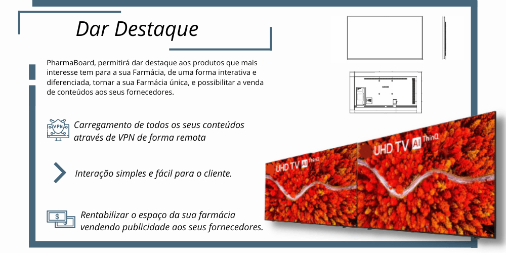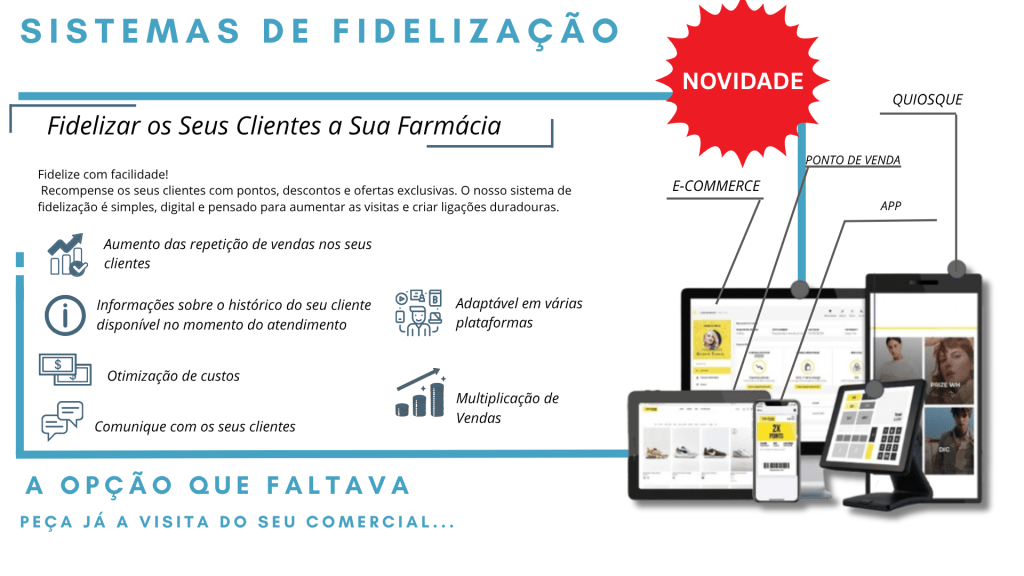 Dispomos de várias soluções personalizadas para que seja possível ao nosso cliente ter a melhor forma de comunicação para com o cliente da farmácia.