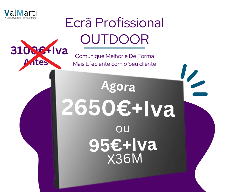 Ecrã de elevada luminosidade – 24 horas por dia.
