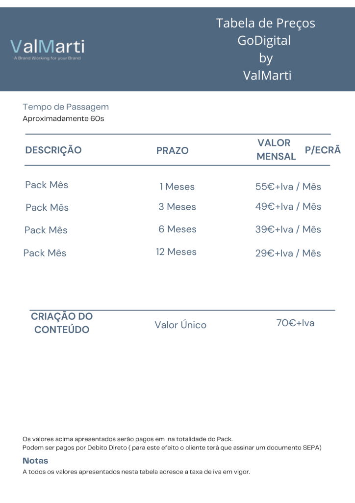 Para publicar a sua empresas nos nossos, ecrãs pedimos que preencha o formulário, abaixo selecione a opção desejada e nos envie para o emial:   info@valmarti.com,  assinado e carimbado de forma digital.