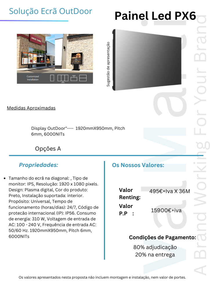 Proposta de fornecimento OutDoor Restaurante vela Lisboa Pedimos a Impressão assinatura e carimbo da nota de encomenda. Escolha a opção pertendida: ← BackYour message has been sent Nome do Responsável(obrigatório) Atenção Email(obrigatório) Atenção Condições de Pagamento de Pronto Pagamento: 70% Adjudicação 30% Entrega Notas: Atenção Aviso! Enviar InformaçãoSubmitting form Δ