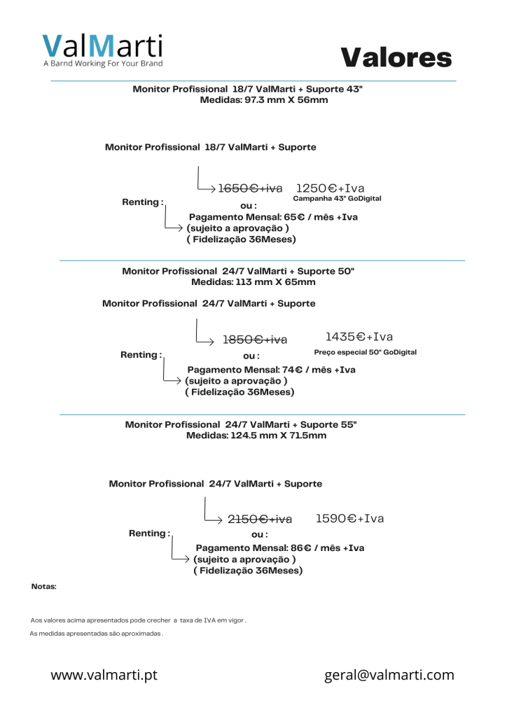 Proposta Ecras ValMarti Profissionais GoDiGital 43″,50″e 55″