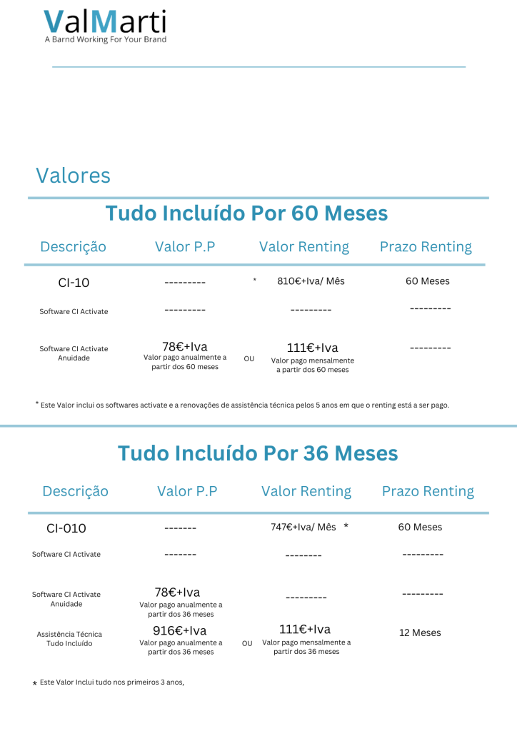 Valores Para 2 Equipamentos